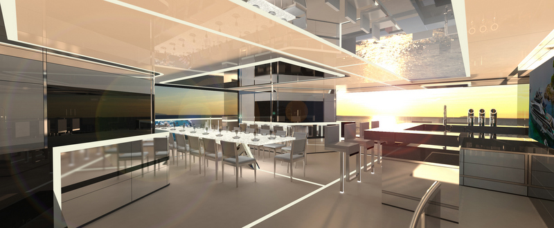 Please contact CharterWorld - the luxury yacht charter specialist - for more on superyacht news item "62m H2 Yacht Design - dining area".