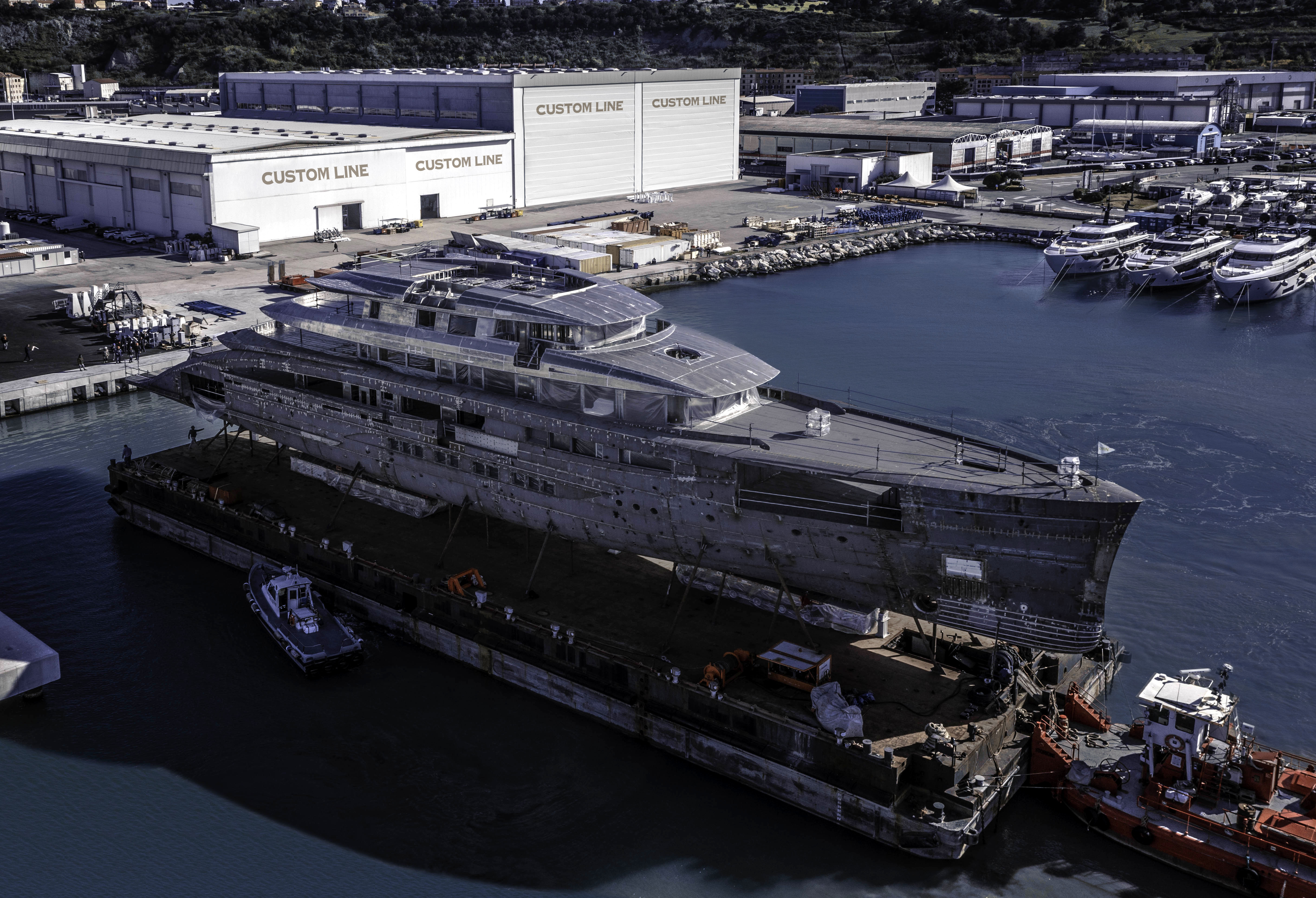 This image is featured as part of the article 67m mega yacht CRN143 PROJECT MARANELLO – hull has been relocated as she continues to take shape.