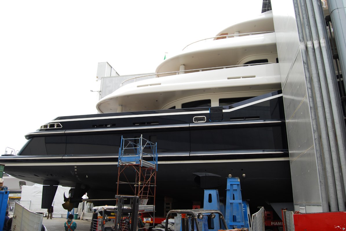 Please contact CharterWorld - the luxury yacht charter specialist - for more on superyacht news item "Aft detail of the 70 metre motor yacht NUMPTIA by Rossi Navi at her launch".