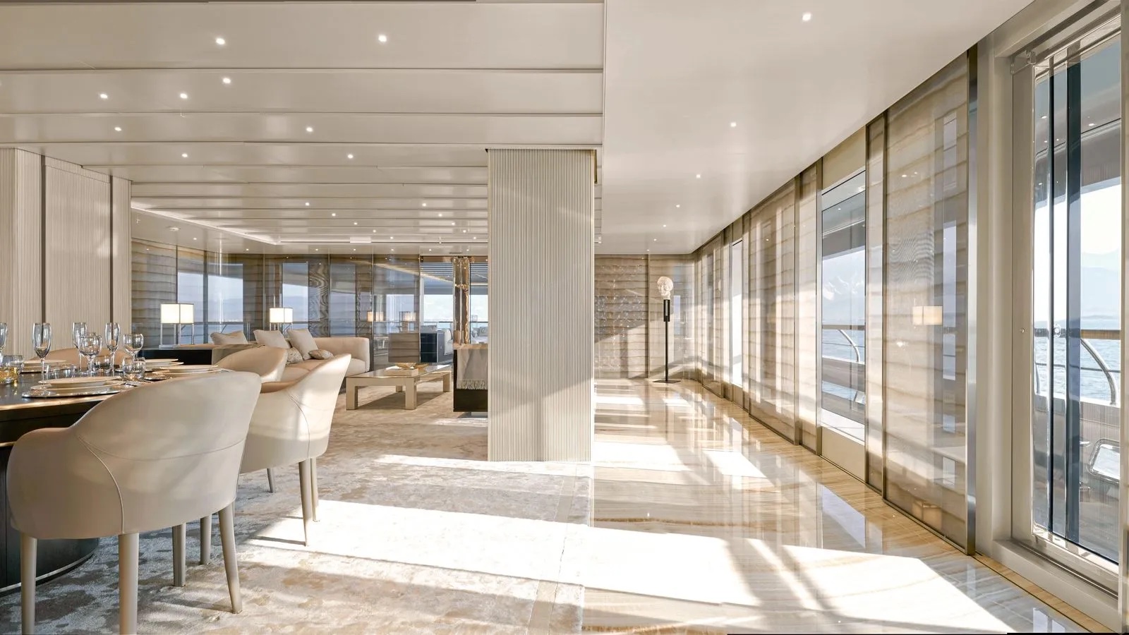 Please contact CharterWorld - the luxury yacht charter specialist - for more on superyacht news item "Interior dining area with huge glazed walls".