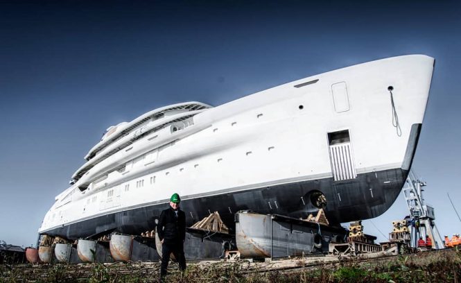 The technical launch of this Espen Oeino-designed motor yacht took place in December last year. Based on the interior volume AMELS 78 is bigger than Here Comes the sun which measures 83 metres, however, has only 2,827GT.