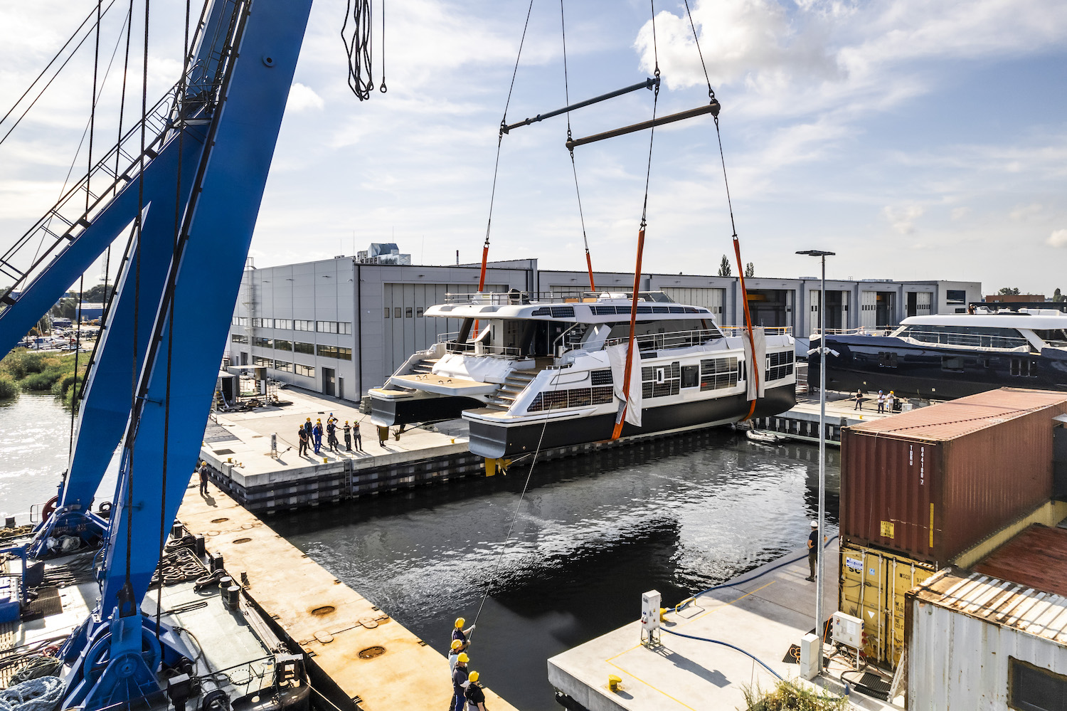 This image is featured as part of the article The 80 Sunreef Power Eco yacht hits water.