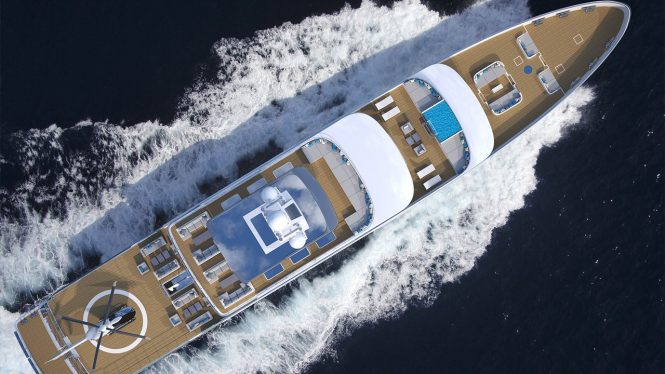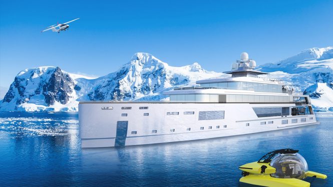 New York-based studio Gill Schmid Design have released the first concept images for an 80m/262.4ft hybrid explorer yacht.