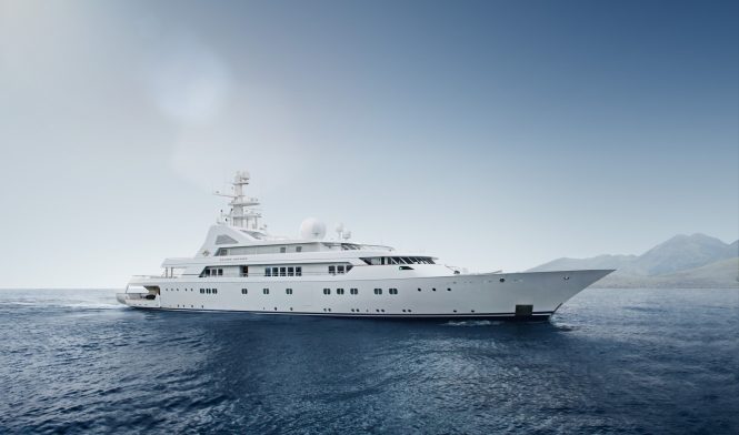 Launched in 1990, her original naval architecture and exterior styling was the work of Platou Architects, with interiors from Alberto Pinto. Today, among her sensational amenities is a hexagonal Jacuzzi on the sundeck, a mosaic pool that converts into a dance floor and timeless, sophisticated interiors that vary from dark wooden panelling in the bedrooms and formal dining room to the light skylounge with arched windows and a grand piano for entertaining.