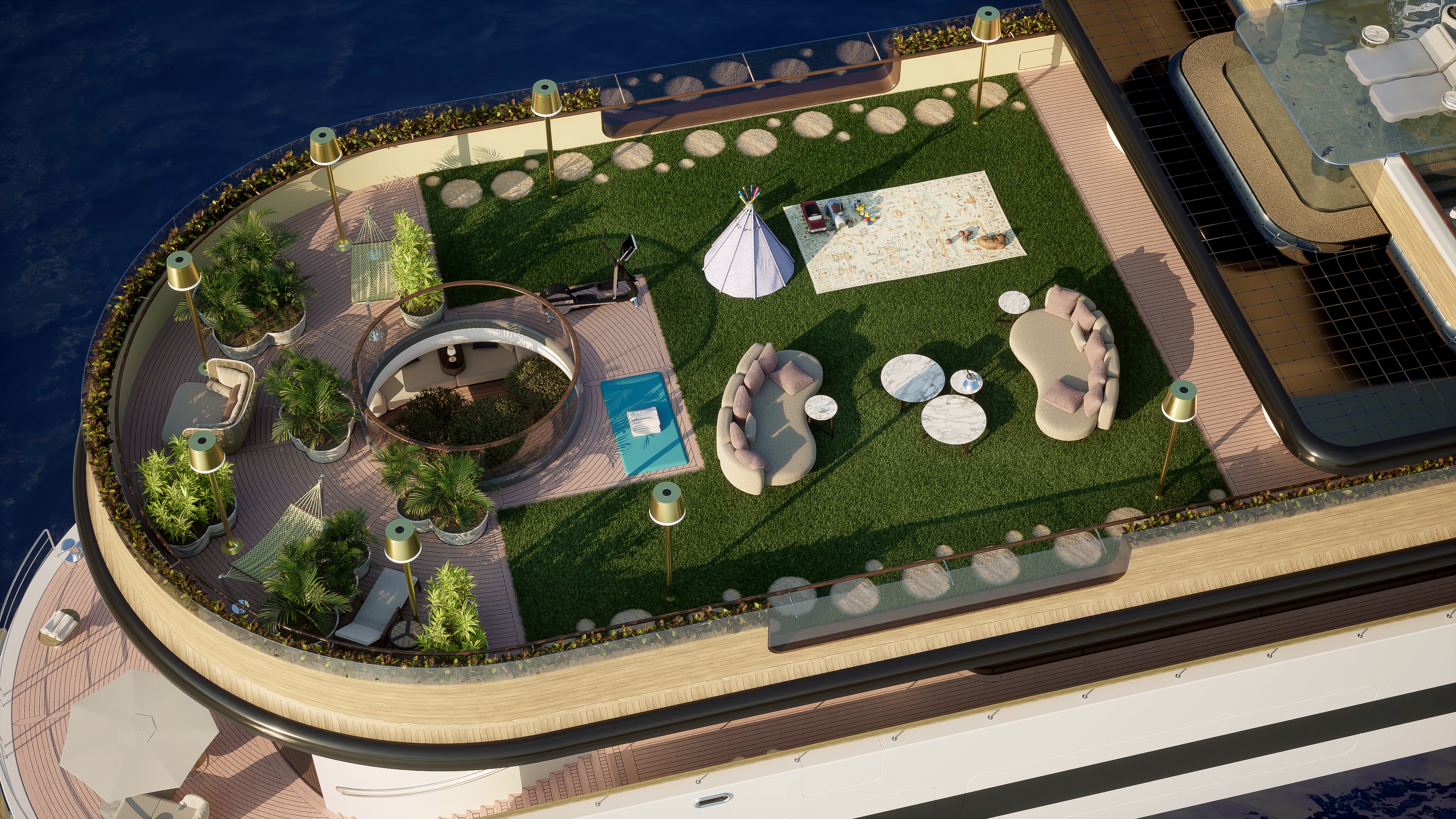 This image is featured as part of the article 85m nature-led superyacht design SYMBIOSIS to be unveiled at 2023 Monaco Yacht Show by Studio KMJ.