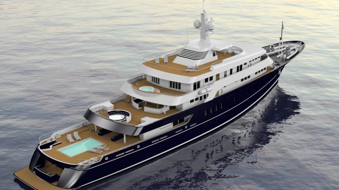 The upper deck treats guests to a sky lounge, formal dining room and connected cocktail lounge, and an observation lounge forward looking out over the touch-n-go helipad on the bow. The aft section has had the overhang extended to create a sheltered alfresco dining area combined with glass windbreaks and outdoor heating for use beyond the warm summer season, and a Jacuzzi is also placed aft for the group to unwind in the sunshine.