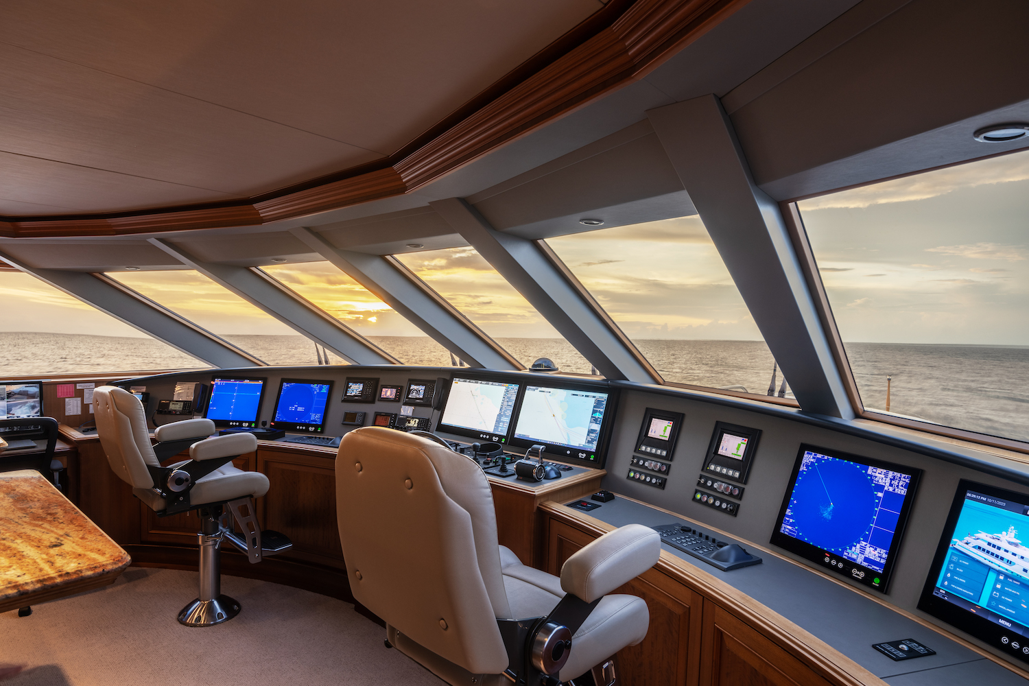 Accommodation aboard Burger luxury yacht INGOT is divided into 5 beautifully appointed staterooms. There is a gorgeous owner’s stateroom, as well as four king-size guest cabins with built-in sofas, custom made carpets and individualized color schemes. The crew area can be found forward, and has direct access to the guest accommodations for discrete and efficient servicing of the area.