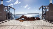 - Pool deck – Alfresco dining area sunbathing. Superyacht Titania