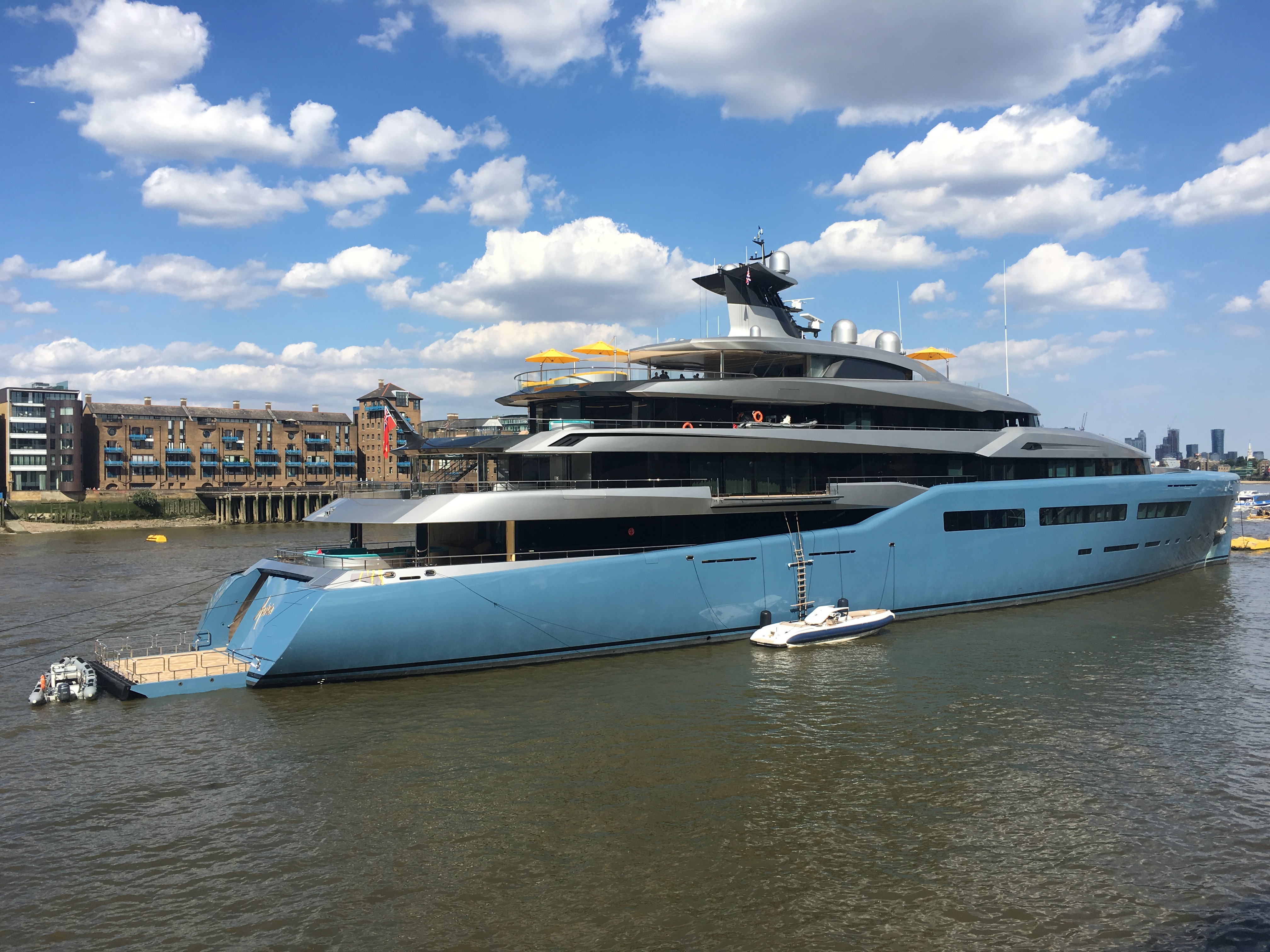 This image is featured as part of the article Abeking & Rasmussen superyachts Aviva and Elandess attract attention outside Tower Bridge.