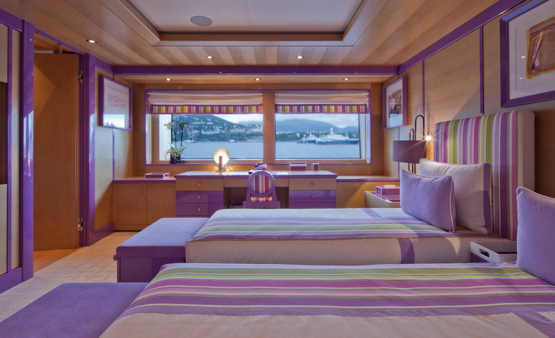 Please contact CharterWorld - the luxury yacht charter specialist - for more on superyacht news item "Luxury yacht CHOPI CHOPI - Purple guest cabin main deck".