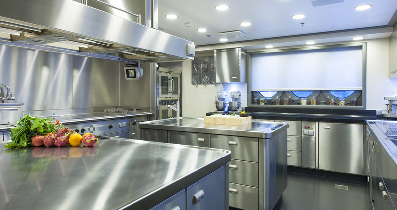 88m mega yacht Quattroelle – Galley Photo by Klaus Jordan