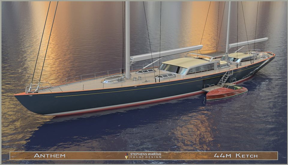 This image is featured as part of the article Additional renderings of 44m Spirit of Tradition sailing yacht ANTHEM concept by Stephens Waring Yacht Design.