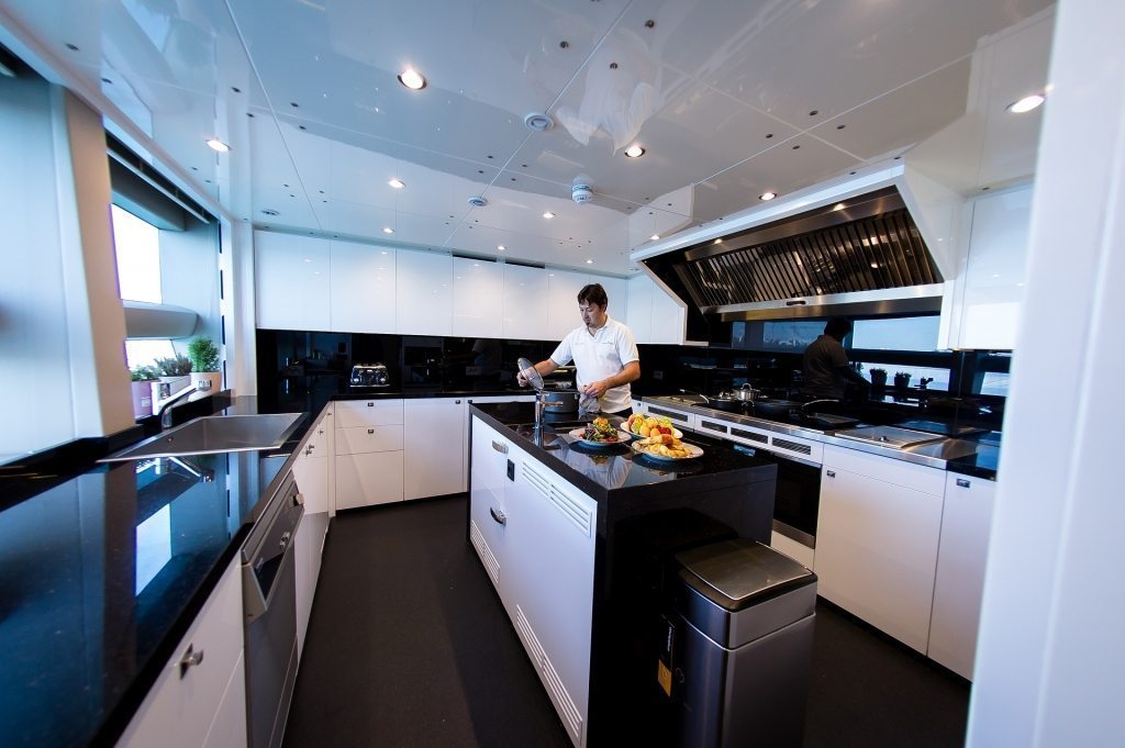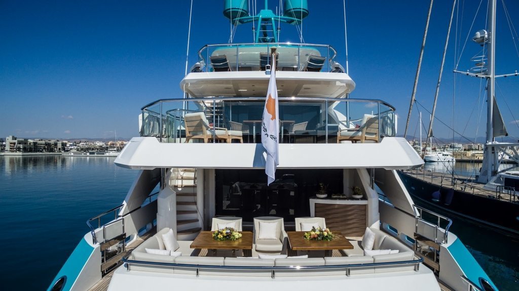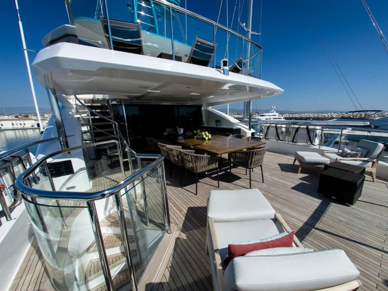 Superyacht Princess 98 can easily sleep her guests in 5 deluxe cabins, including a generous full-beam owner’s suite. There is also accommodation for a crew of up to 6 members.