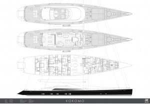 Luxury yacht Kokomo will have a crew of twelve accommodated in six cabins, all with ensuites.