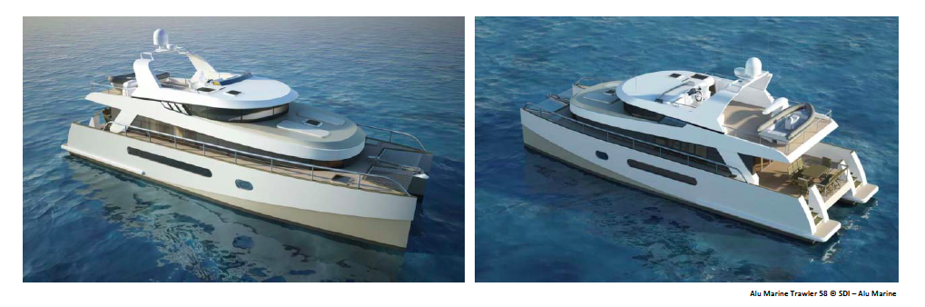 The new 58’ trawler catamaran design by Stirling Design International and Alu Marine shipyard
