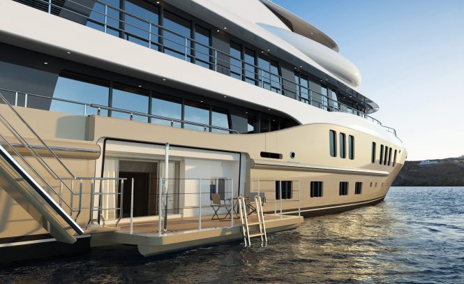 She was designed by Tim Heywood and is being built with an amazing living area for her guests to enjoy. The 6.5m infinity pool is placed on the 240sqm owner’s deck, while the sundeck benefits from further recreation and entertainment facilities.