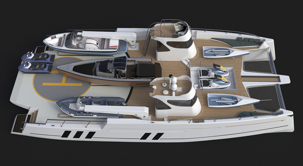 This image is featured as part of the article Arista Marina 24m catamaran yacht Phantom – a superyacht support vessel.