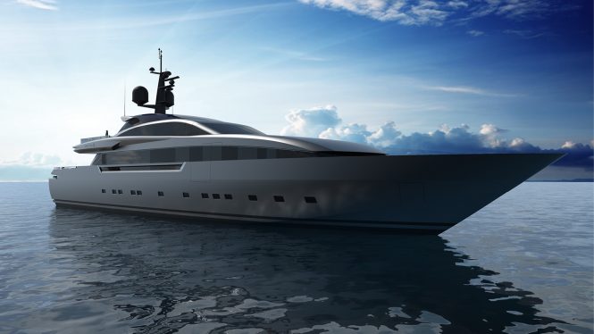 The Italian shipbuilder Baglietto reveals first renders of the 43m FAST HT motor yacht HULL 10226 currently in-build and with delivery in 2021.