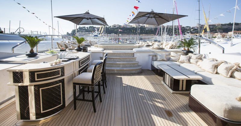 Superyacht ILLUSION V – Sundeck bar, lounging area and Jacuzzi