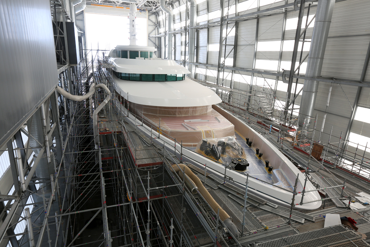 Superyacht LADY CHRISTINE undergoing full paint work at Monaco Marine La Ciotat