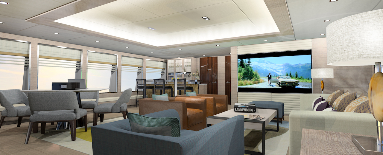 Please contact CharterWorld - the luxury yacht charter specialist - for more on superyacht news item "Benetti FB803 Blake Interiors rendering Sky Lounge".