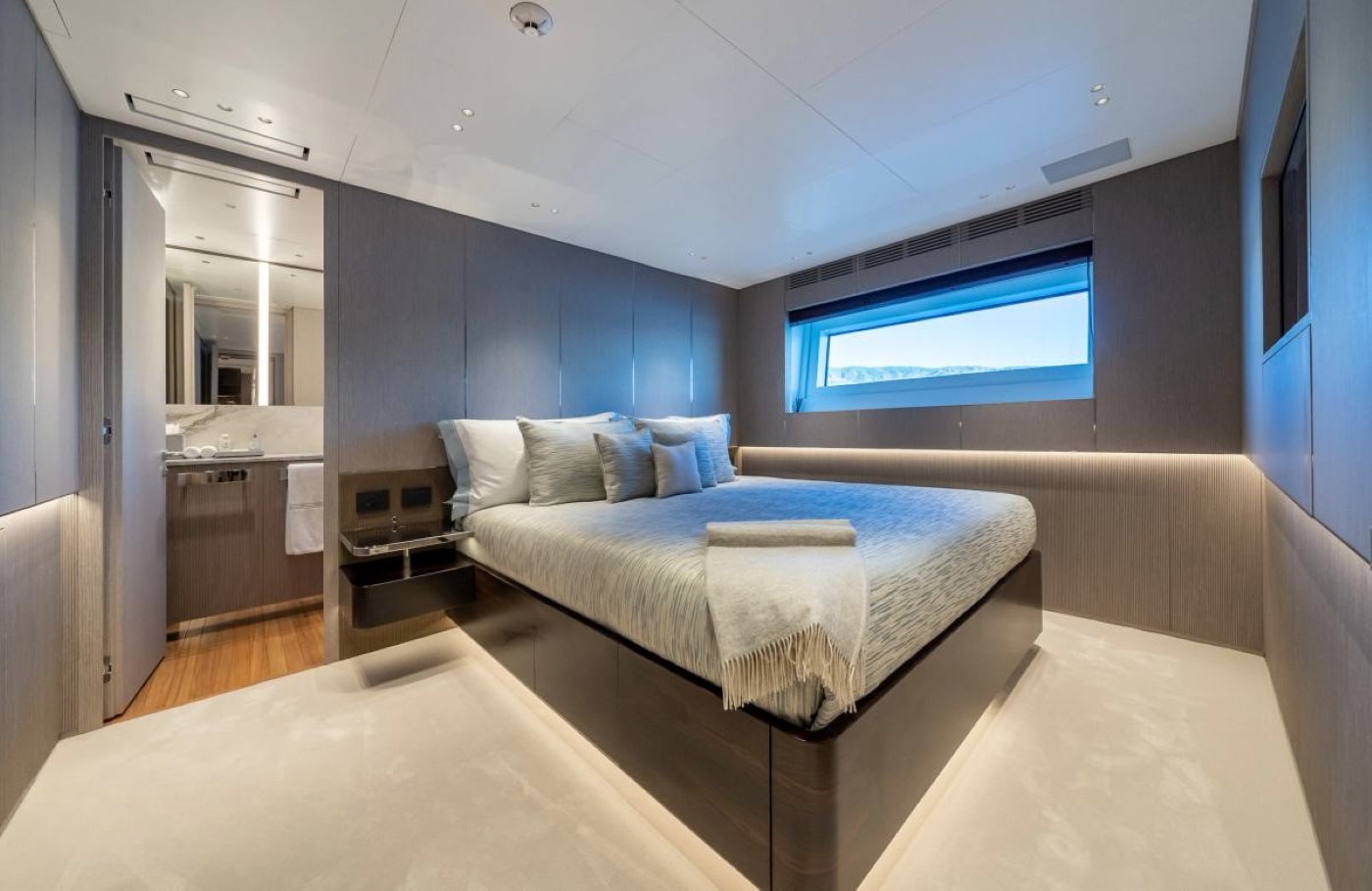 The highly innovative Tradition Supreme 108′ series is part of the Benetti Class Displacement line of composite yachts from 93′-145′. The first Tradition Supreme 108’ vessel to hit the water at the Benetti shipyard was superyacht My Paradis, boasting lovely interiors created by Francois Zuretti.