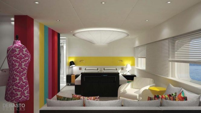 Accommodation aboard is in 16 cabins, these comprise 2 master staterooms on the bridge deck, 6 VIP suites on the upper deck, 1 VIP suite on the main deck and 7 deluxe cabins, also on the main deck.