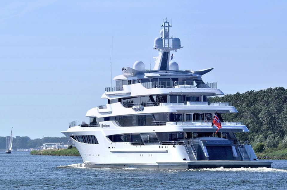 Superyacht Royal Romance at the North Sea Canal near Buitenhuizen, heading from Amsterdam to IJmuiden, July 21, 2015. Photo Jan Ramaker and Feadship Fanclub