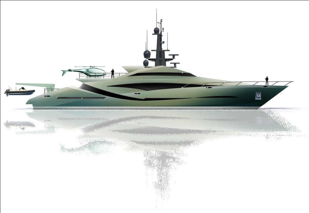 Alex McDiarmid – 150′ 46m side profile explorer yacht version