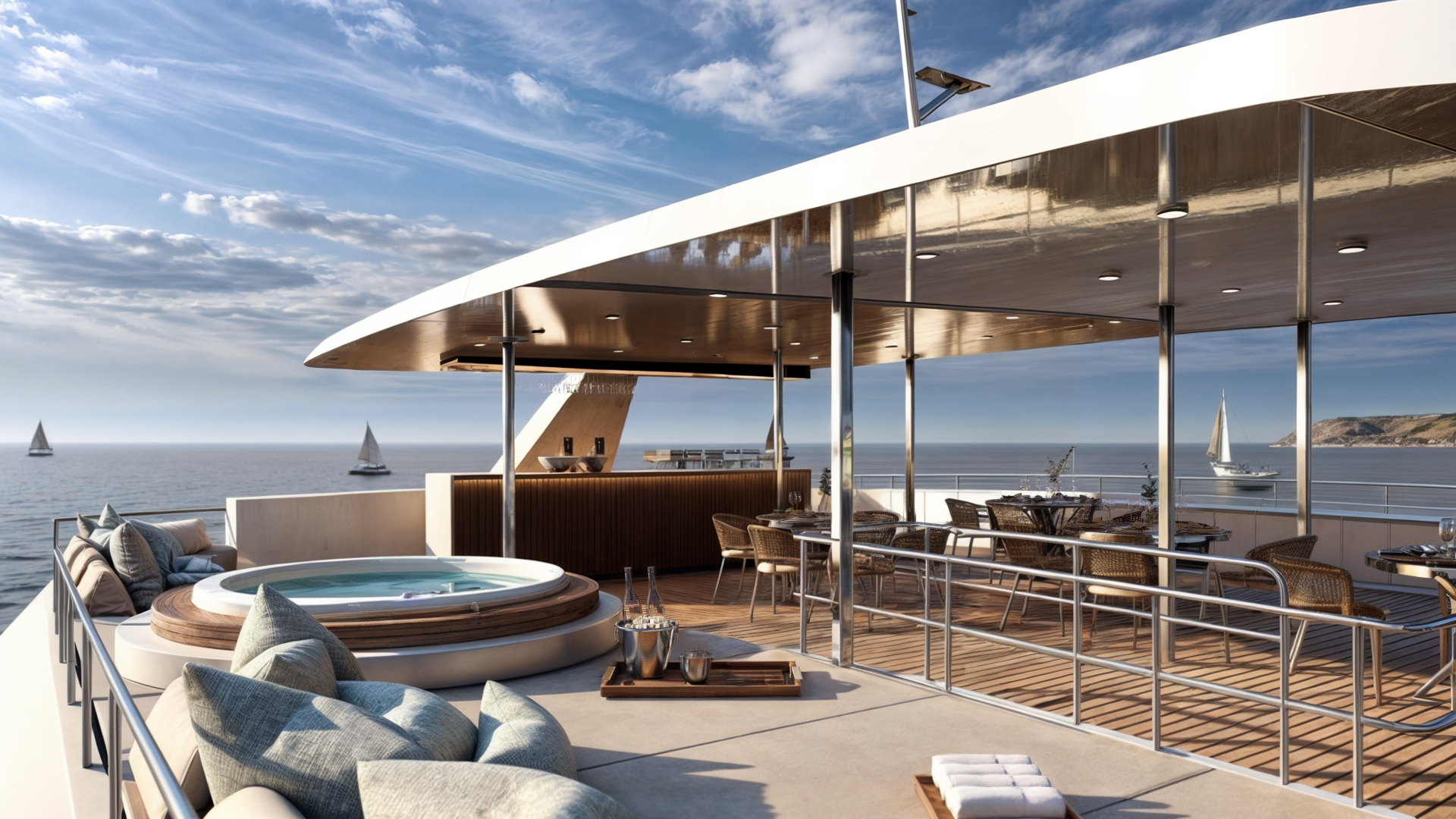 Please contact CharterWorld - the luxury yacht charter specialist - for more on superyacht news item "Dining and jacuzzi on the sun deck".