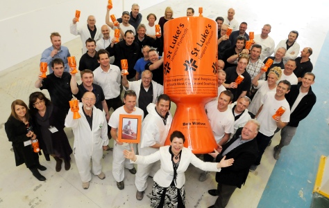 Princess Yachts celebrate the 30th Anniversary of St Luke’s Hospice with 6 foot tall collection pot for the charity
