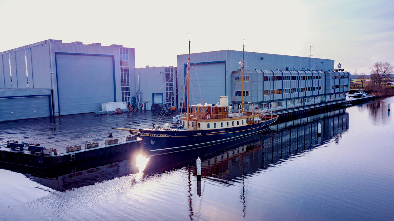 37m Classic luxury yacht Atlantide arrives at Huisfit for restoration