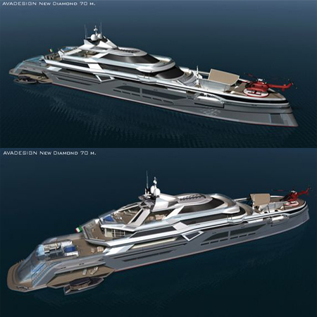 Avadesign has revealed their latest 70-metre motor yacht concept NEW DIAMOND by Andrea Vastano.One of the main aspects of the design was to create a yacht that would be as “green” as possible, an increasing trend in the Superyacht industry. ... read full story