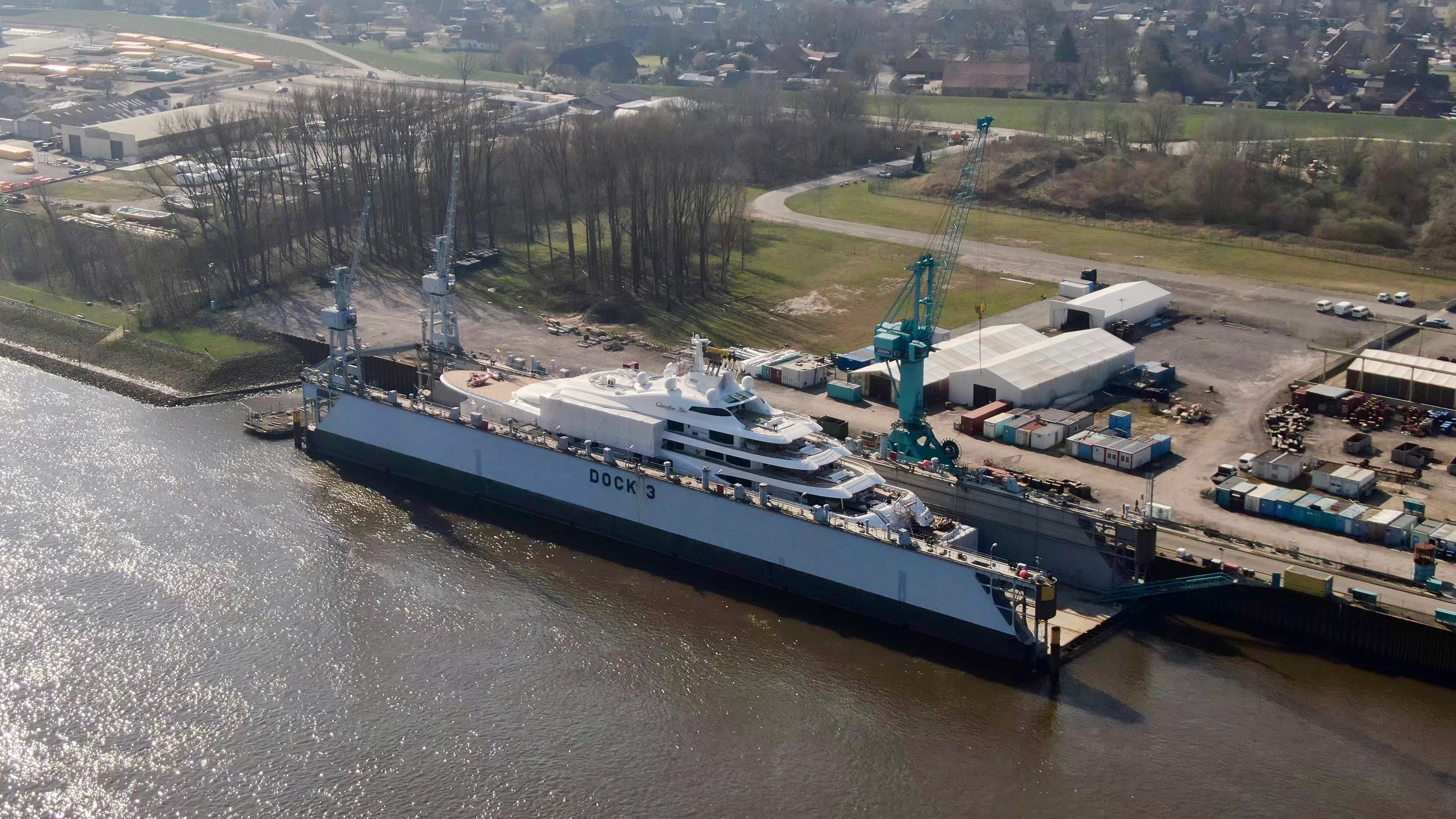 Photos & Video: 104m mega yacht QUANTUM BLUE at Lurssen for servicing or refit
