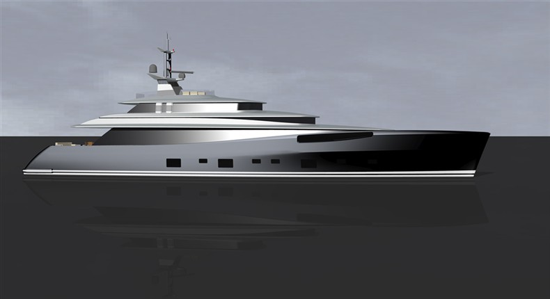 Dubois Naval Architects have designed a 435 meter motor yacht known as the design number 379. The 379 Dubois superyacht measures 44.4 meters (145ft) and features a steel displacement hull and an aluminium superstructure. The purposeful-looking sleek 45m motor yacht by Dubois boasts a fold-down bulwark balcony on the port side for the main-deck VIP... ... read full story