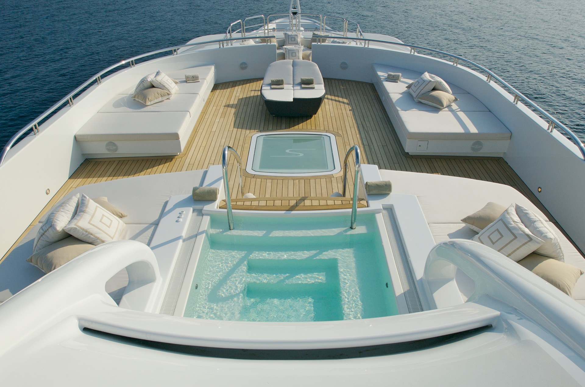 Motor yacht SIREN – Sundeck aft with Jacuzzi. Photo credit Nobiskrug