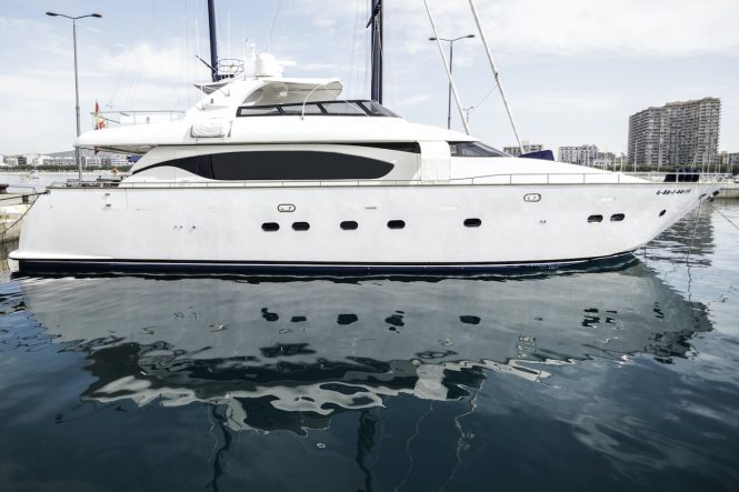 The beautiful 24m/78.9ft luxury yacht ROSIQUE from renowned shipyard Maiora is available for Western Mediterranean charters from Spain all the way to Sardinia.