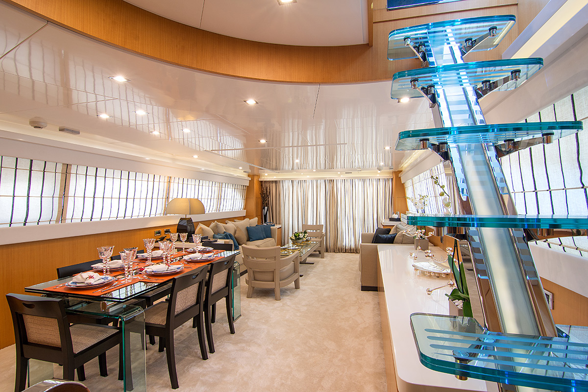 Please contact CharterWorld - the luxury yacht charter specialist - for more on superyacht news item "Luxury yacht TALYNE - Salon and formal dining area".