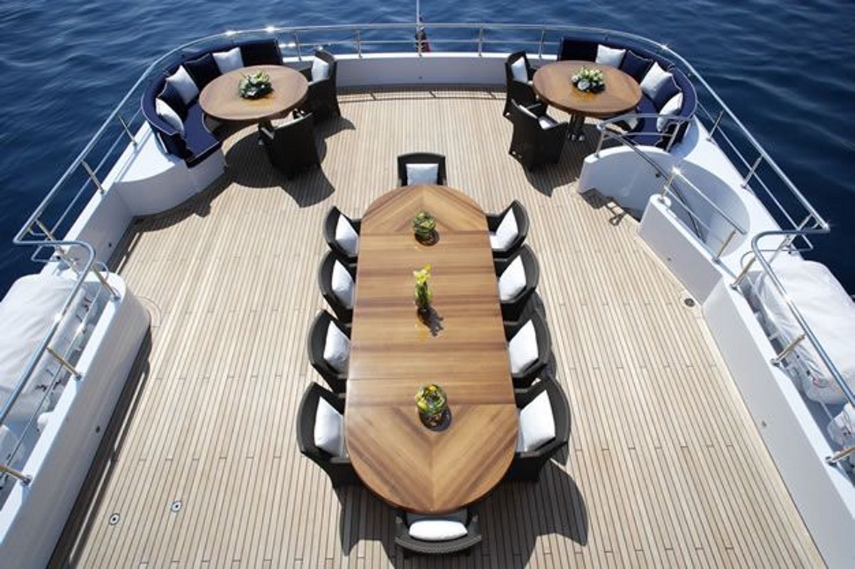 Luxury yacht SEQUEL P – Alfresco dining on the sundeck