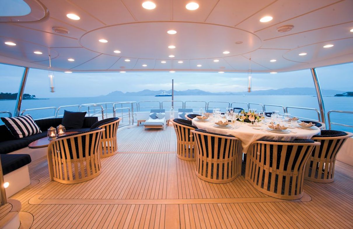 Please contact CharterWorld - the luxury yacht charter specialist - for more on superyacht news item "SEABLUE'Z - aft deck dining".