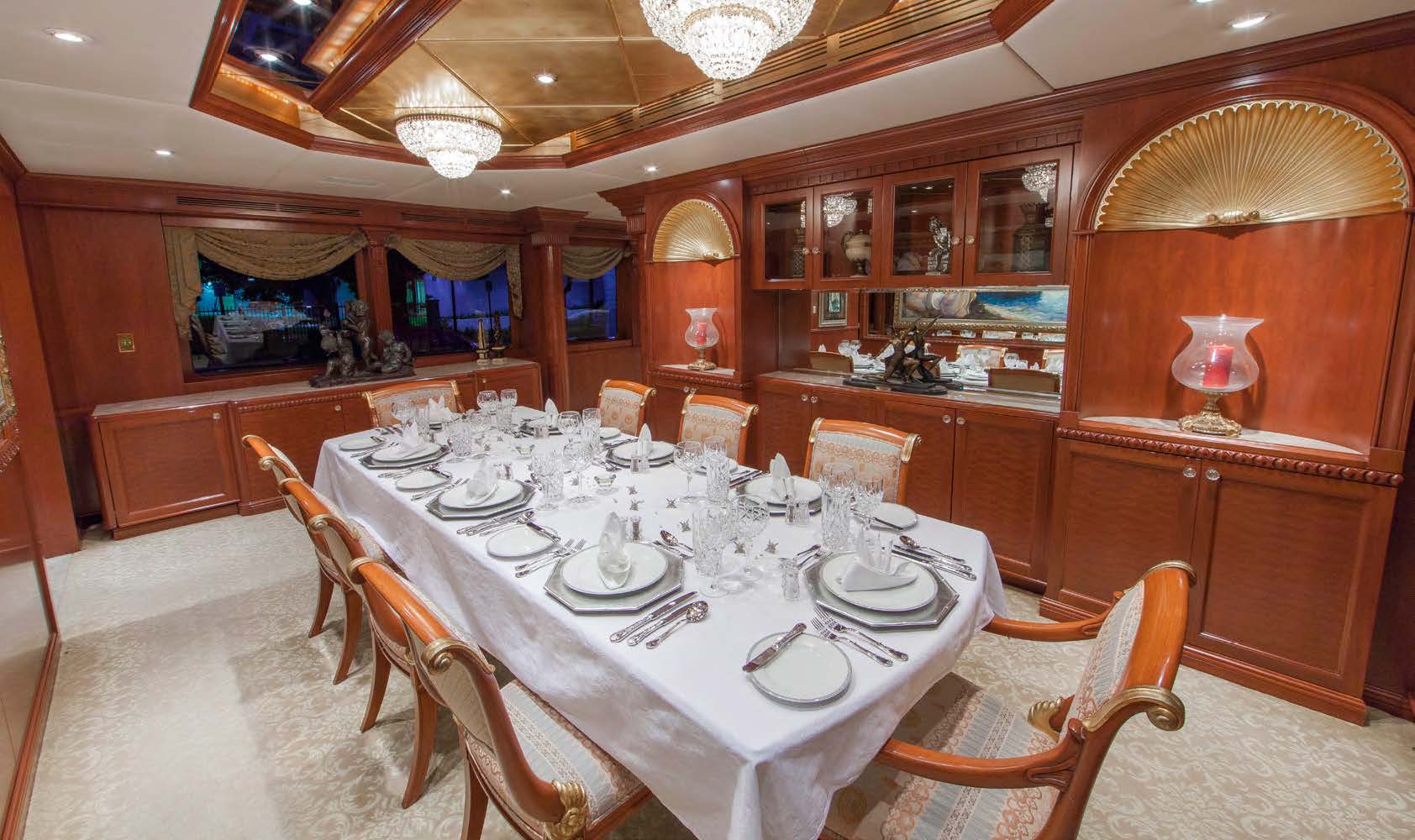 Please contact CharterWorld - the luxury yacht charter specialist - for more on superyacht news item "Motor yacht RELENTLESS - Formal dining area".