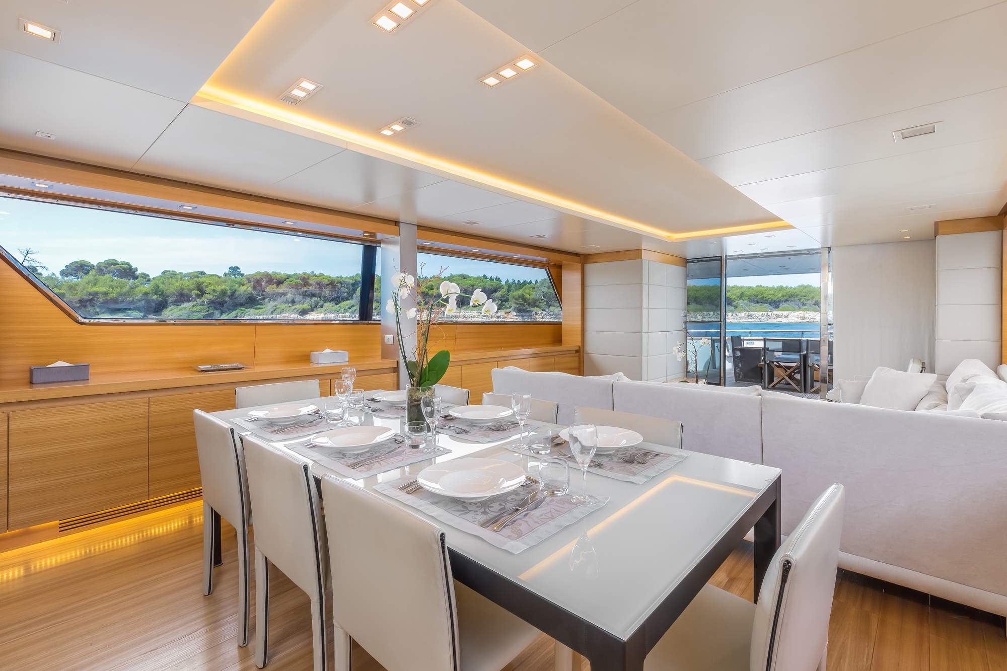 Please contact CharterWorld - the luxury yacht charter specialist - for more on superyacht news item "Motor yacht SUD - Formal dining area in the main salon".