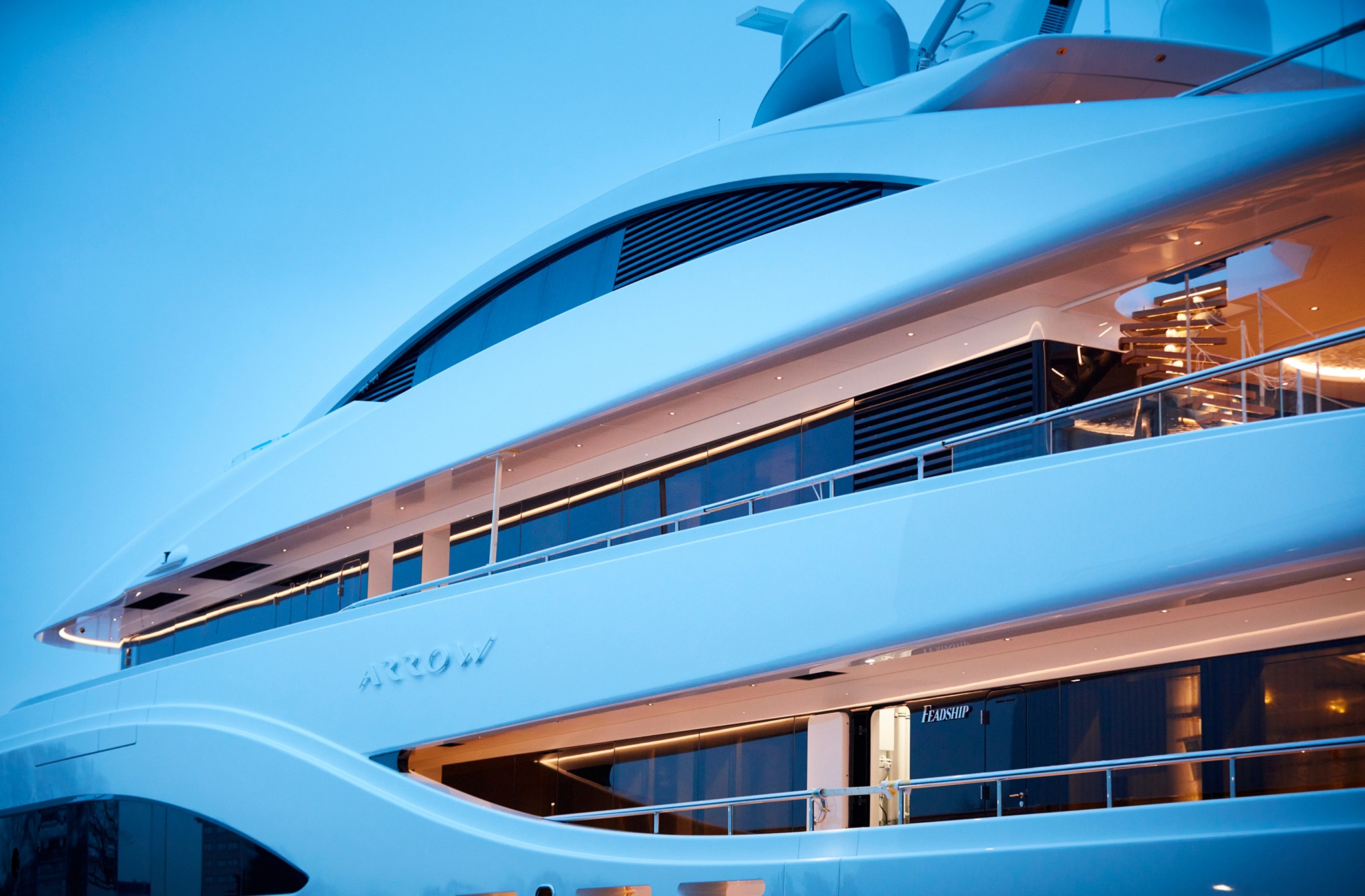The brand-new 75m/246ft superyacht ARROW (ex PROJECT 703)was launched only a few days ago at the Feadship facilities in the Netherlands and has now become available for charter in the Mediterranean next summer.