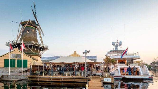 The latest yacht built by Mulder Shipyard, charter motor yacht CALYPSO, has been delivered to her owner at the historic drying-shed of sawing mill Heesterboom with over 130 guests. The 36m motor yacht showed off her exterior designed by Claydon Reeves with naval architecture by Van Oossanen Naval Architects and interiors created by Vickers Studio.