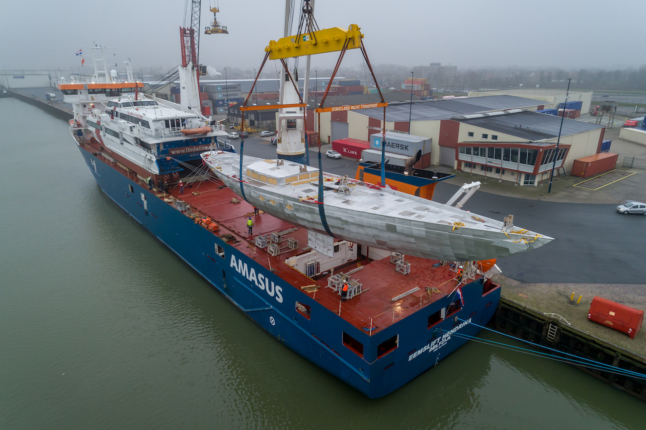 New Truly Classic 127 Sailing Yacht ATALANTE leaves her shed at Claasen
