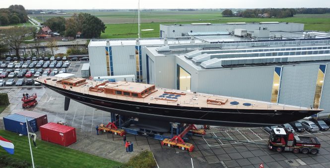 The new 56m classic ketch sailing yacht Aquarius was lowered into the water for the first time after being brought from Royal Huisman’s shipyard in Vollenhove. Dutch built, this beautiful superyacht is going to have her two masts stepped and rigging installed before being tested in the North Sea. She will then be handed over to her owner.