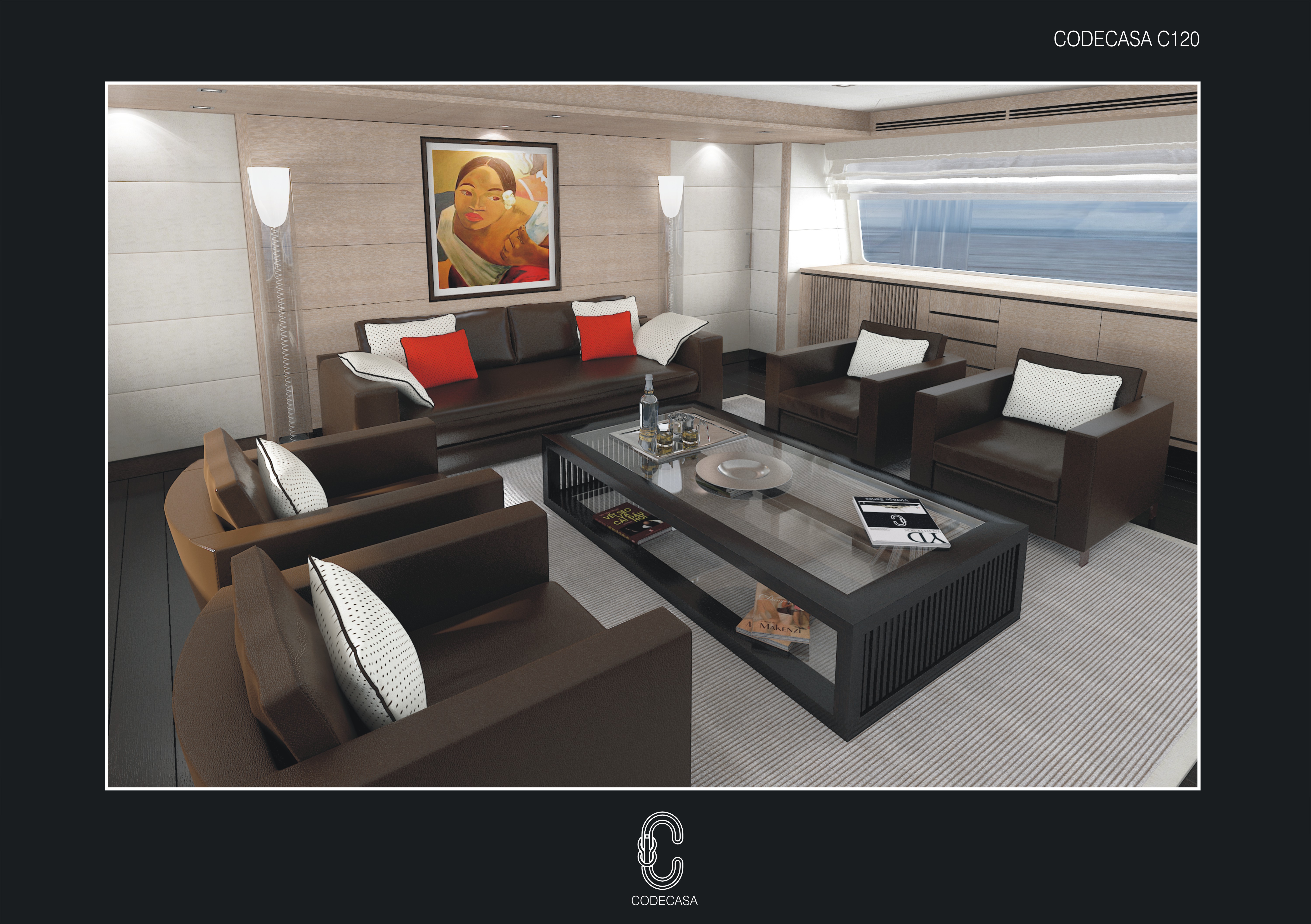 Please contact CharterWorld - the luxury yacht charter specialist - for more on superyacht news item "Luxury yacht Hull C 120 Main Saloon".