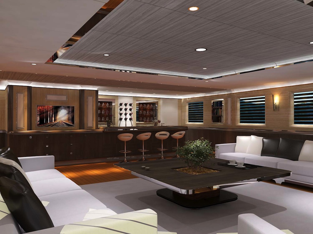 Colombus 245 motoryacht upper salon rendering – Image courtesy of Palumbo