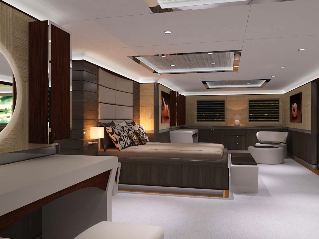 Please contact CharterWorld - the luxury yacht charter specialist - for more on superyacht news item "Superyacht Colombus 245 Owners Suite rendering - Image courtesy of Palumbo".