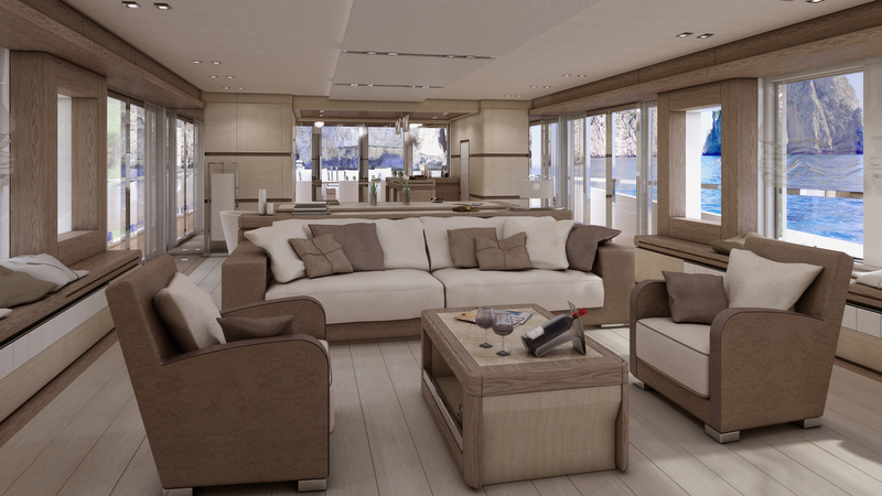 Please contact CharterWorld - the luxury yacht charter specialist - for more on superyacht news item "Columbus Sport 130 Hybrid Yacht - Main Saloon".